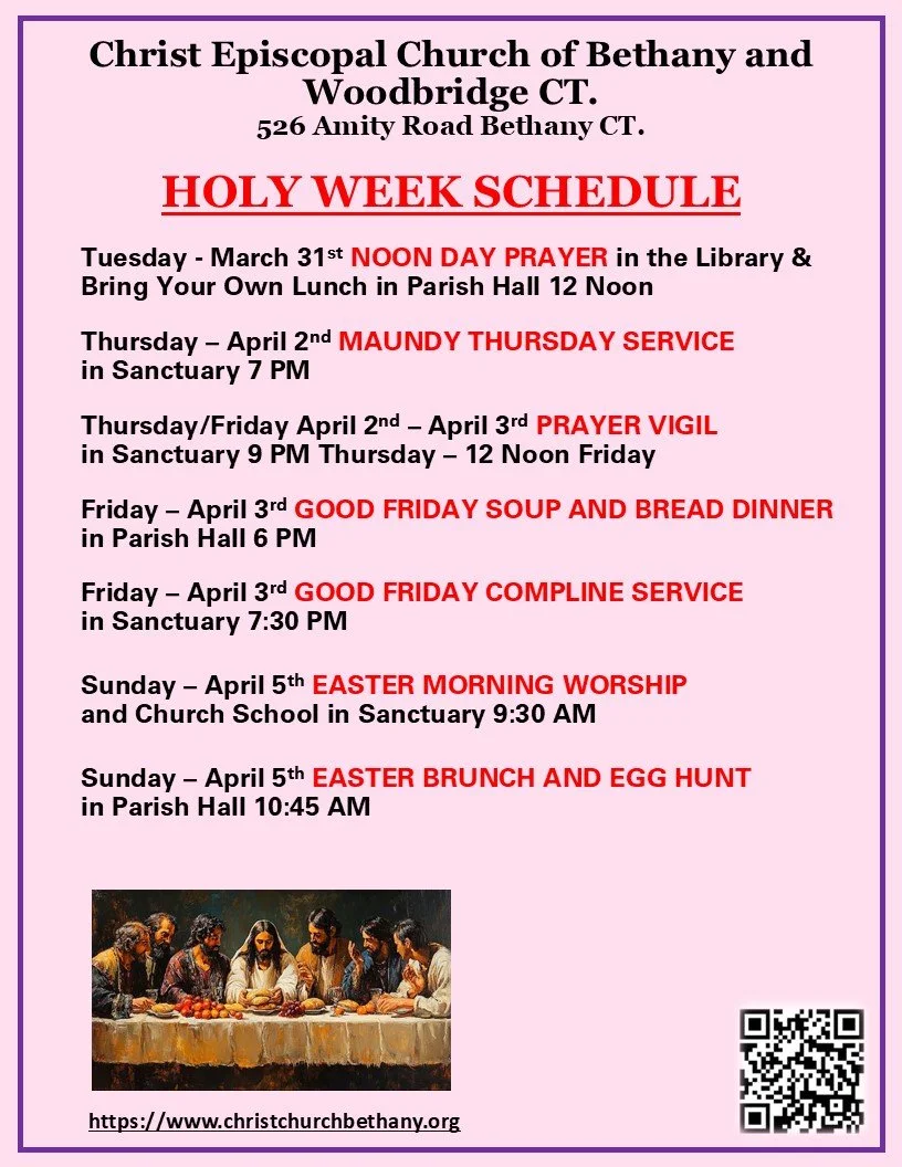 Greetings! This is where Christ Church will post details about all upcoming holiday services. Everyone is welcome. Details of worship services will be provided below when need be. We hope to see you at our services. Happy Easter!